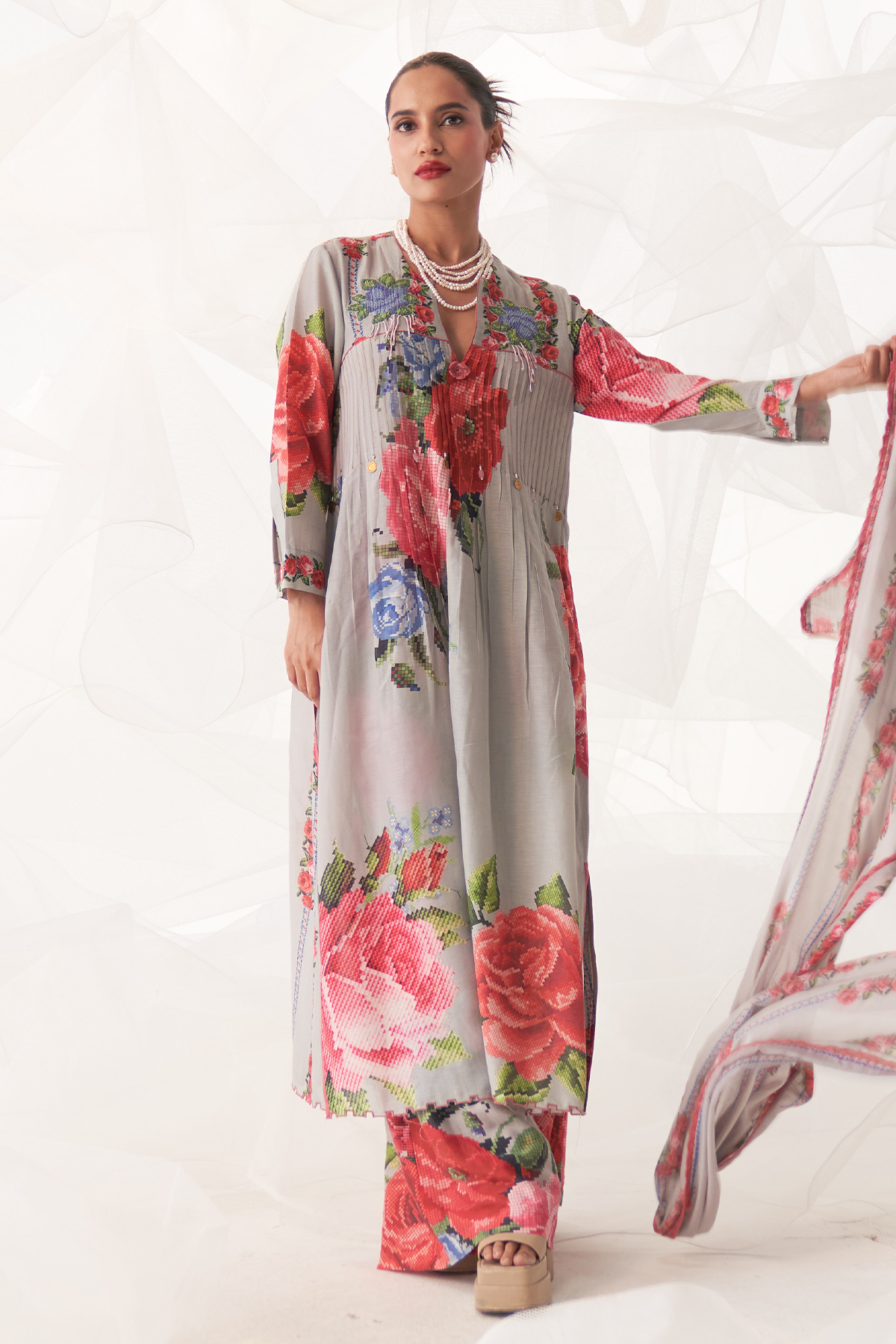 IVORY MULTI FLORAL DRAPE CAPE SET