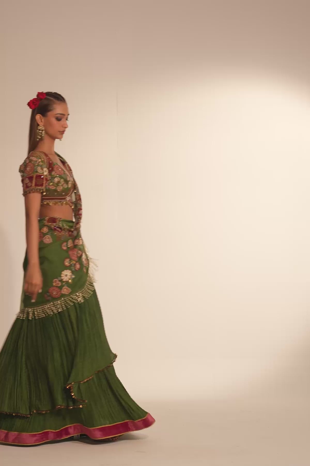 Crinkle mulmul drape saree featuring an embroidered organza palla, paired with a beautifully embroidered raw silk blouse