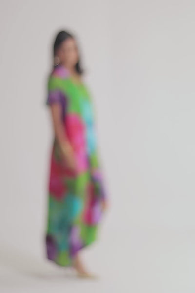 Printed Silk Front Pleated Dress